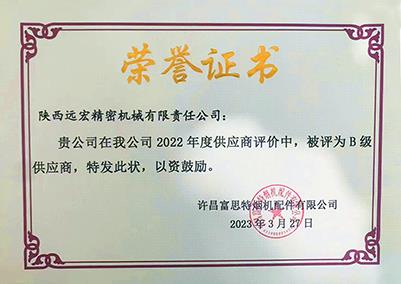 熱烈慶賀我司被許昌富思特煙機配件有限公司評為B級供貨商,我司愿與各友商攜手共進、共謀發展。