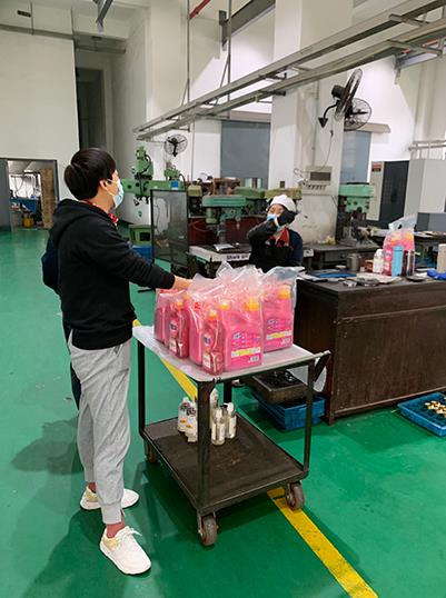 綜合部溫幫英代表公司給女神們發放專屬福利
