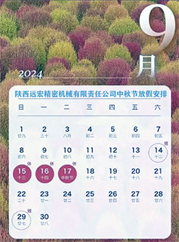 陜西遠宏精密機械有限責任公司中秋節放假安排